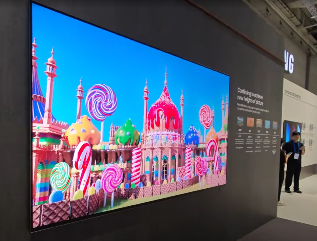 Micro RGB הוא מסך ראשון מסוגו בגודל 115 אינץ' עם תאורת backlight מיקרו-RGB שמאפשרת שליטה נפרדת בשלושת ערוצי הצבע (R/G/B) — גישה שמספקת local dimming צבעוני אמיתי ותפוקה של 100% BT.2020 עם הסמכת VDE לדיוק צבע. זהו מעבר מהותי למיצוי טווח צבע מקצועי במערכות תצוגה גדולות.