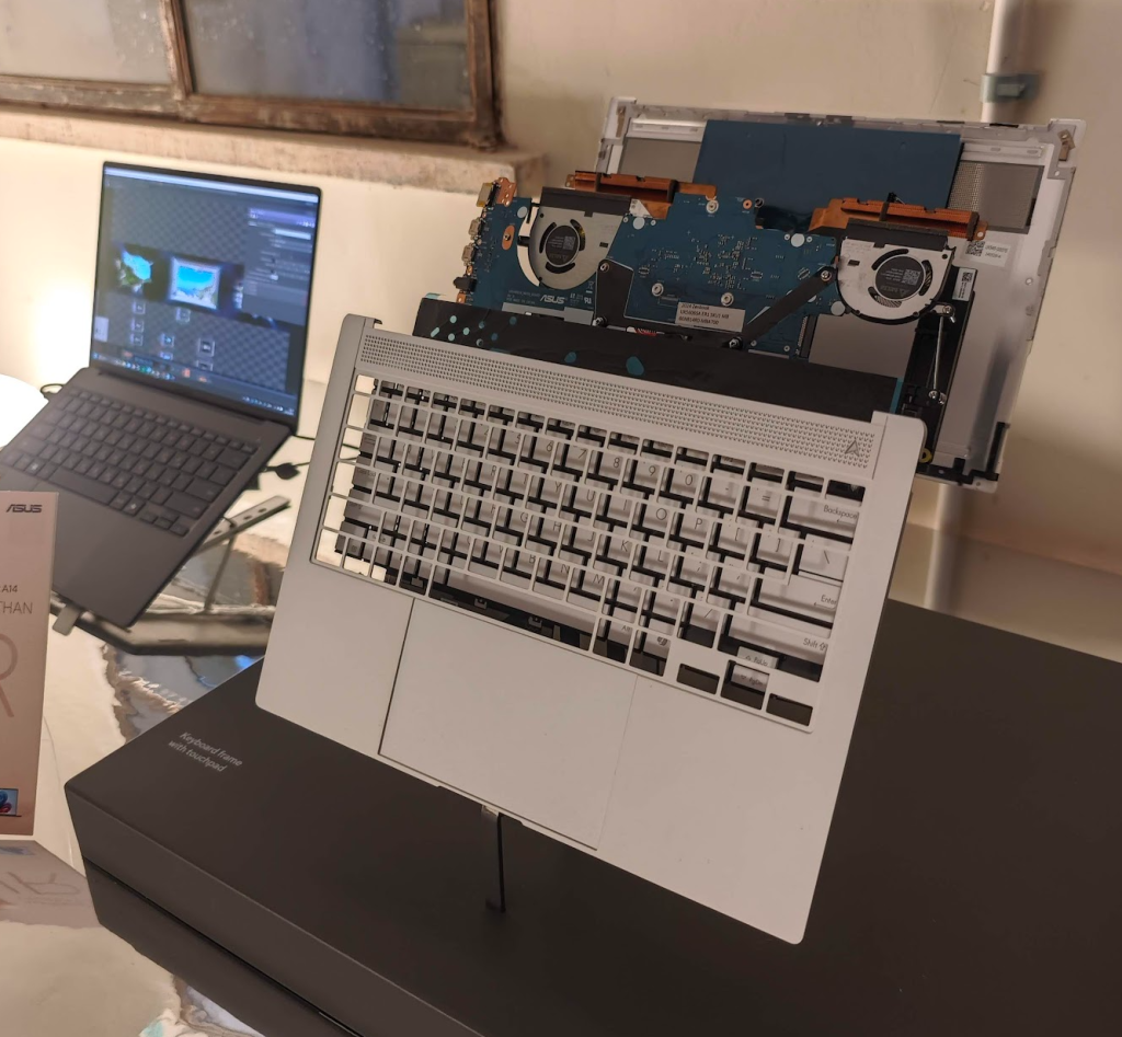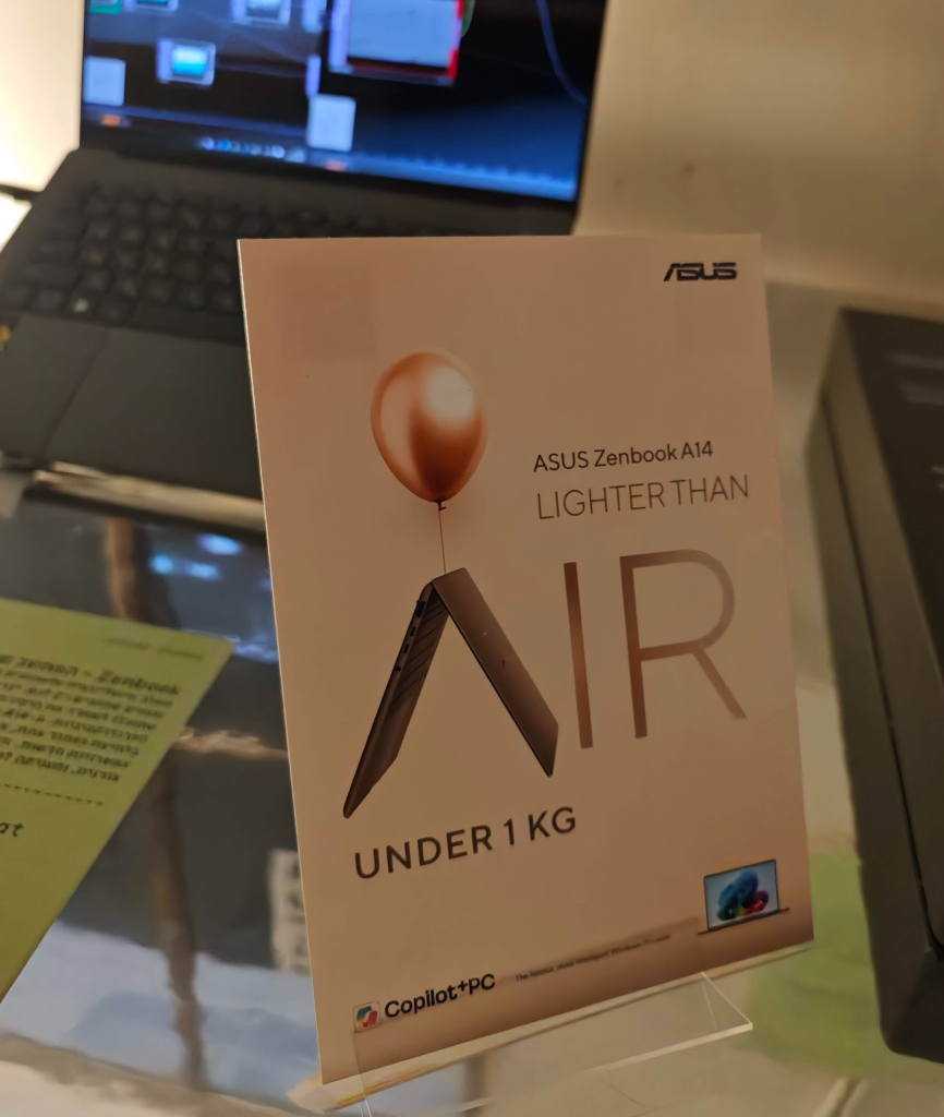 בלב השואו-רום של ASUS עומד ה-Zenbook A14 (UX3407), המוגדר כמחשב דגל המשלב ניידות קיצונית עם ביצועי קצה. הדגם מתהדר במשקל הנמוך מקילוגרם אחד ("Lighter Than 1 KG"), וזאת הודות לשימוש בחומר חדשני – Ceraluminum™. חומר זה, המשלב קרמיקה ואלומיניום, נלקח מעולמות תעשיית התעופה ושעוני היוקרה, ומספק למחשב עמידות גבוהה לצד עיצוב אלגנטי במיוחד בגווני פנינה או חרס. המחשב מצויד במנועי בינה מלאכותית (AI) מובנים (AI engines), המיועדים לשחרר את יצירתיות המשתמשים ולהכפיל את הפרודוקטיביות שלהם. באמצעות לחיצה אחת, נפתחת דלת לעולם שלם של אפשרויות חדשות, תוך חיסכון ניכר בזמן ובאנרגיה. המחשב מיועד להיות Copilot+ PC, מה שמבטיח אינטגרציה עמוקה עם יכולות ה-AI של מיקרוסופט.