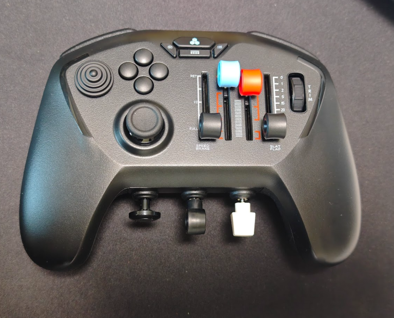 אחד הפיצ'רים המשמעותיים ביותר עבורי הוא העובדה שהשלט מודולרי. ישנם ארבעה סליידרים עם "נקודות עצירה" (detents), וניתן להחליף להם ראשים שונים בהתאם לסוג המטוס. כך אפשר להגדיר את השלט למטוסי נוסעים, מטוסים קלים או טורבו-פרופ.